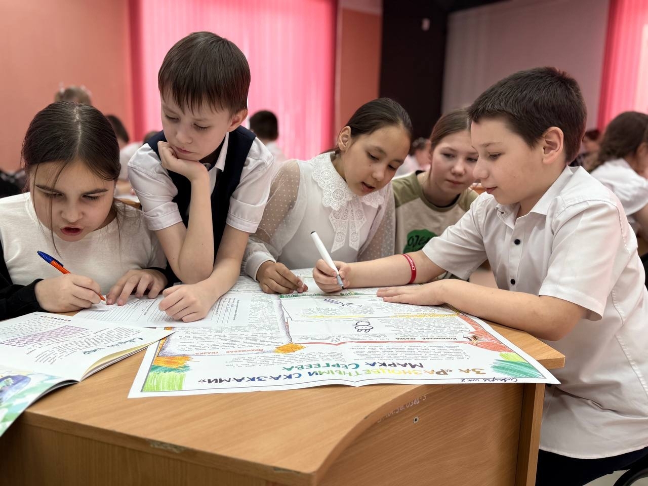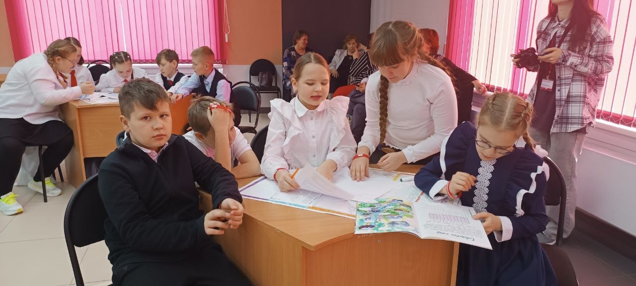 Ученики третьих и четвертых классов из разных школ разделились на 8 команд. Нужно было ответить на вопросы по вкладке из журнала № 1 – 2026 года и выполнить занимательные задания. Все они были связаны с творчеством сибирского писателя Марка Сергеева, который придумал сказку про Сибирячка.